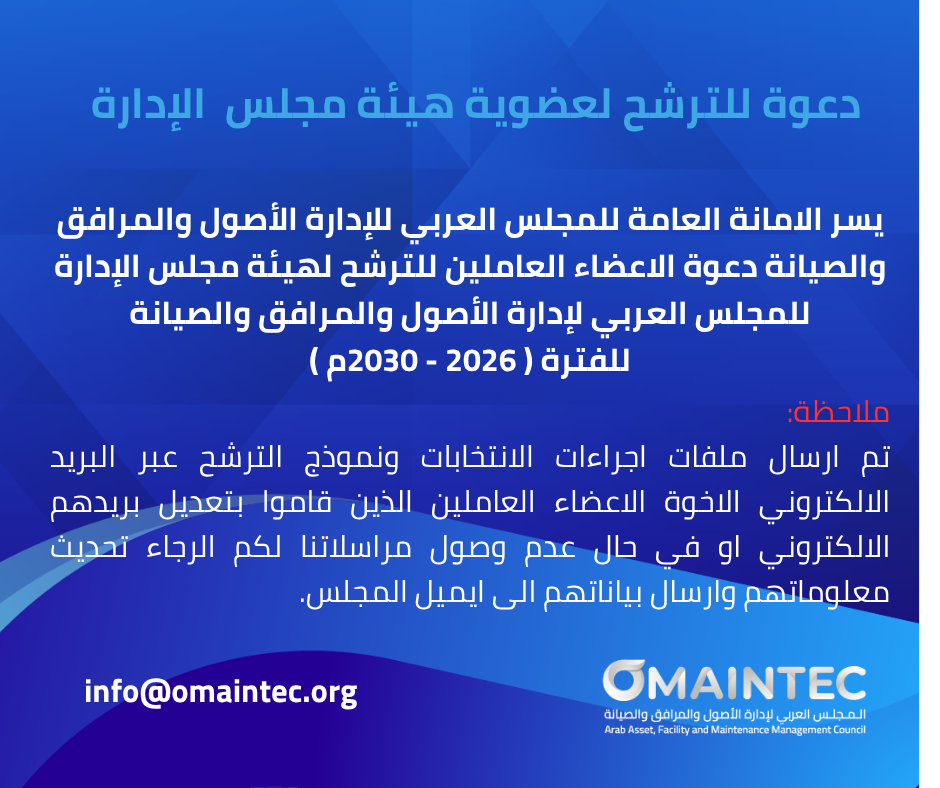 مجلة علمية محكمة نصف سنوية تصدر عن المجلس العربي لإدارة الأصول والمرافق والصيانة
