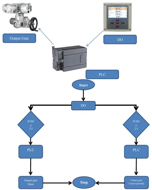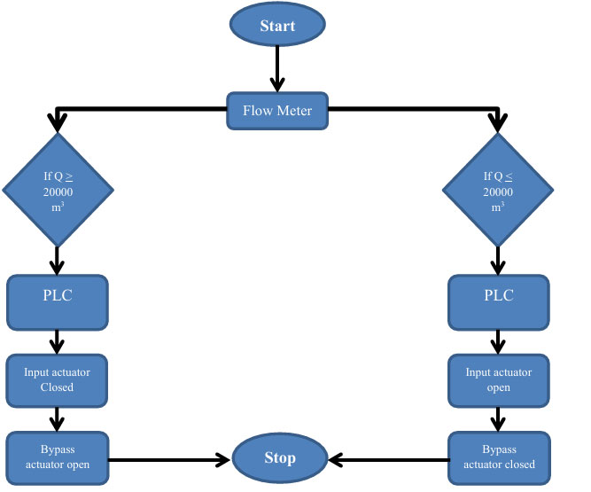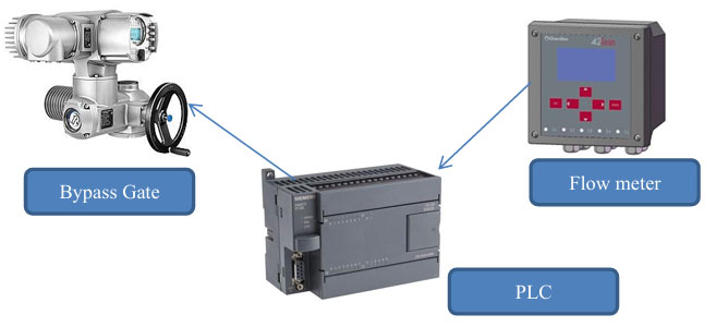 - Create smart solution by using PLC to making communication between the actuator of the input gate and the actuator of bypass system and also the flow meter that responsible for display and control on the input quantity .